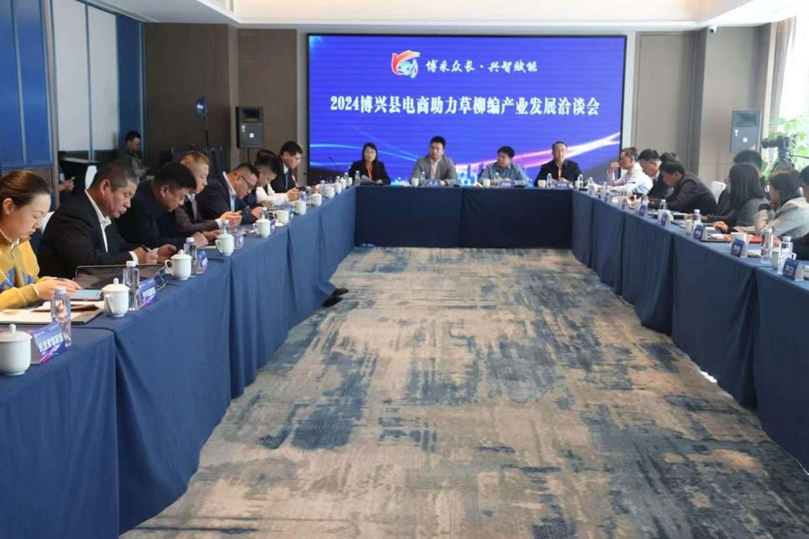 滨州市商务局商贸会展服务中心主任侯雪冬介绍了当地特色产业发展和电商营销情况。他说,近年来,滨州市积极促进电商产业等新业态、新模式加快发展。博兴县麻大湖盛产的蒲苇等为勤劳智慧的劳动人民提供了丰富的编织原材料,草柳编产业在明清时已颇具规模。作为山东省农村电商的发源地,锦秋街道在推动草柳编等产业与电子商务营销平台有效对接方面作了很多创新探索。目前,博兴县拥有全国淘宝镇6个,被评为全国电子商务百佳县。近年来,重点打造了我国最大的草柳编单体标志性产业园,并通过“互联网+电商”的营销模式,将博兴县草柳编产业推向更广阔的云端,构筑了群众共同富裕新高地。