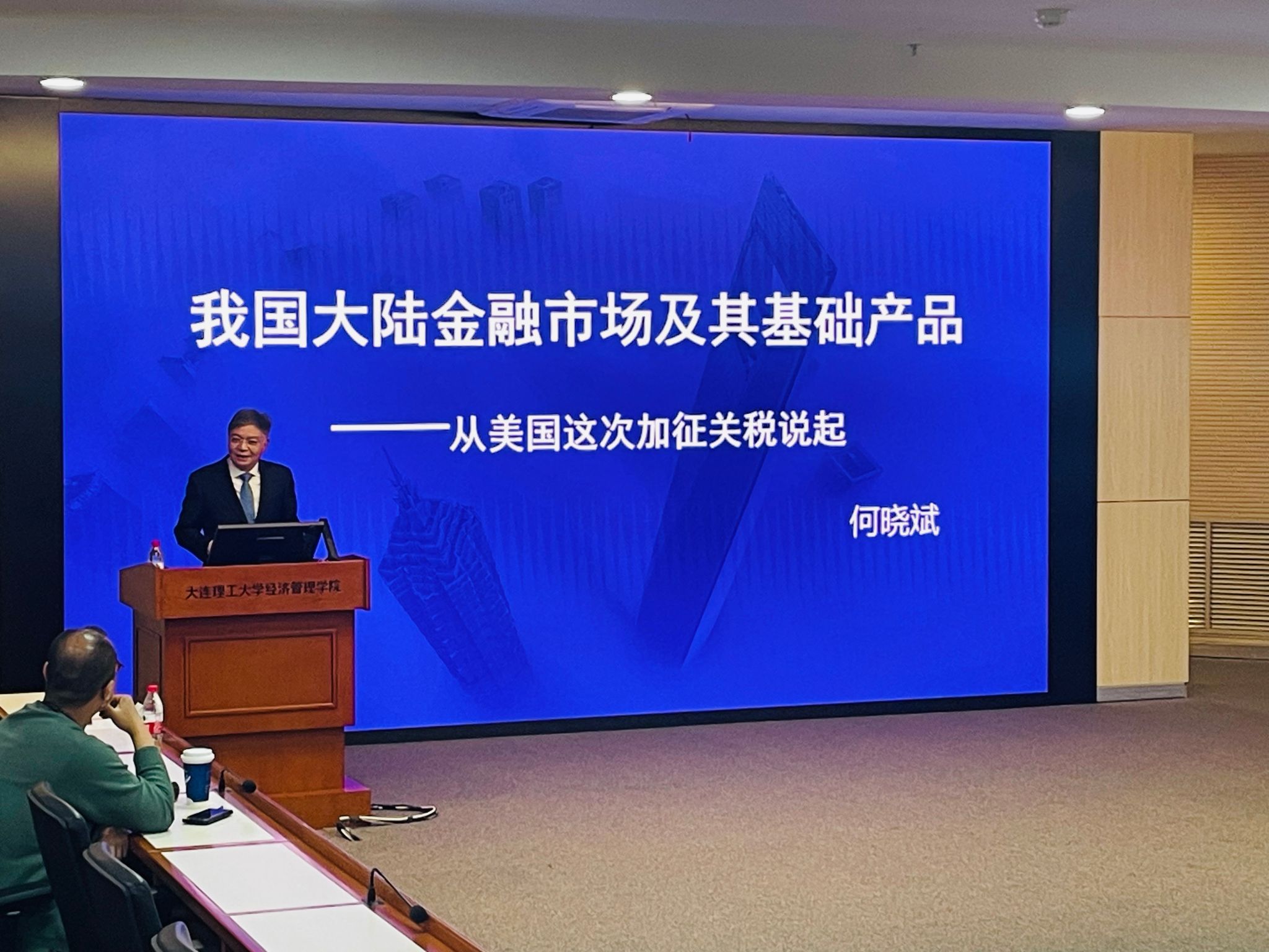 何晓斌从美国加征关税说起,介绍了美国的关税政策对市场的影响以及各国的反应。同时,进一步讲述了我国金融市场及其基础产品,对我国证券期货等金融机构的功能作用进行了全面的讲解。