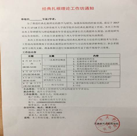 研讨会目的及内容:推进经典扎根理论的教学与研究,加强各院校的经验交流。