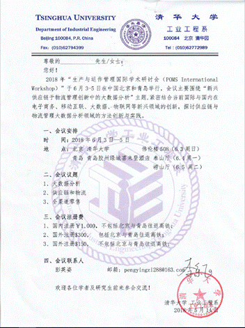 Tsinghua-JD-POMS学术研讨会于2018年6月3日在清华大学校园,2018年6月4日-5日在青岛举行。本年度会议的主题是“新兴供应链与物流管理创新中的大数据分析”。计算能力的增强和数据的大爆炸正在改变着组织获取数据、分析信息和做出决策的方式和内涵。这给运营运作管理学界的研究者提供了独特的机会,可以将大量的数据整合到我们的分析中,并研究出新的建模方法来帮助企业理解运作行为,做出决策。本次研讨会邀请到了包括京东副总裁Jian Pei教授、普渡大学J. George Shanthikumar教授、麻省理工学院 David Simchi-Levi教授、新加坡国立大学Chuang-Piaw Teo教授和哥伦比亚大学David D. Yao教授在内的诸多业界著名专家学者参加。