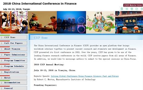 由清华大学中国金融研究中心、美国麻省理工学院斯隆管理学院 (MIT Sloan School of Management)及南开大学共同主办的2018中国金融国际年会(2018China International Conference in Finance, CICF 2018)于8月10日至13日在天津召开。