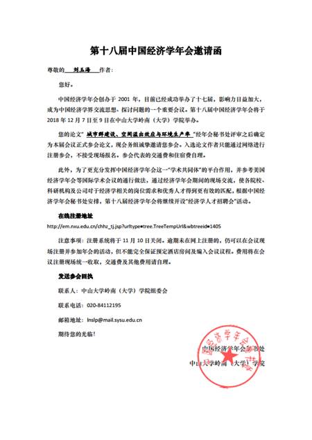 中国经济学年会秘书处、中山大学岭南(大学)学院