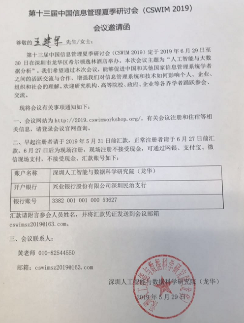 会议通知或邀请函扫描照片