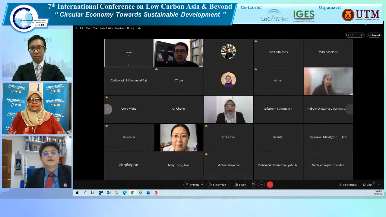 2021年10月18日-19日,第七届亚洲低碳会议由于疫情原因由马来西亚理工大学在马来西亚新山市线上举办,论坛围绕涉及可持续发展的人与自然耦合系统、新冠肺炎后马来西亚城市的未来、区域循环与生态圈、可持续综合足迹分析、中国农田土壤固碳减排技术进展、塑料废弃物与微塑料对环境的污染与生物降解进展、陆源废塑料入海控制的中国方案、新冠肺炎后的可持续能源体系等热点问题等话题,与会嘉宾和代表系统、深入地进行研讨。
