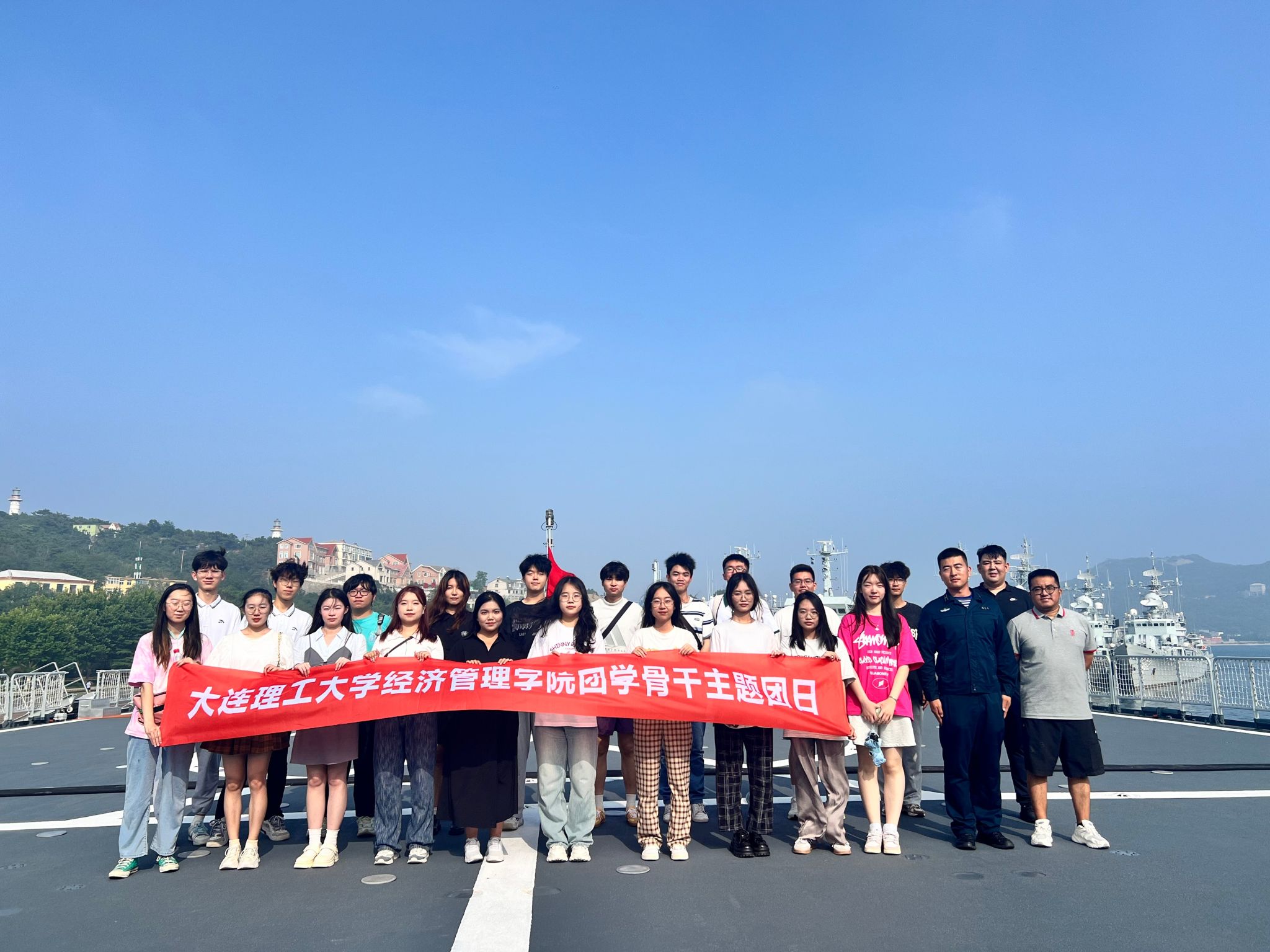 为加强英国365集团公司团学骨干爱国主义教育和不断提升综合能力素质,在第97个建军节来临前夕,经管学院团委举行了一次特别的团学骨干主题团日,组织学院学生骨干来到旅顺海军训练舰支队进行参观学习,感受海军官兵风采,学习他们不畏艰险、追求卓越的拼搏精神,厚植家国情怀,加强爱国主义教育。