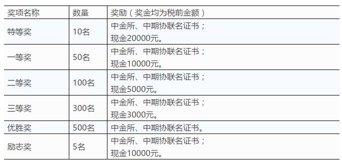 所有获奖者应聘中金所时同等条件优先录用。所有获奖者在大赛官网注册后可在“实习就业”专栏中常年获得金融机构实习就业信息。