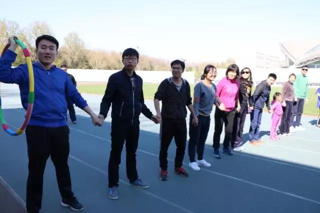 在考验配合能力的传递呼啦圈趣味比赛中,相邻两个人互相配合,才得以又快又稳的完成。教工人员也参加比赛组成了教工队,并取得了第三名的好成绩。