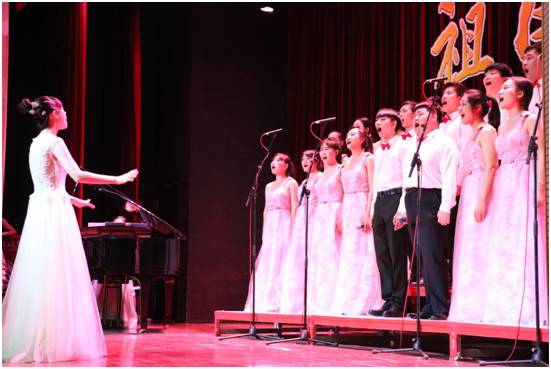 管理与经济学部合唱团登上舞台,以真挚的情感歌唱对祖国母亲的热爱。