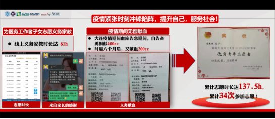 何为担当青春责任?感恩,独立,不再等待他人的资助,而是自我的发光。史秀丽学姐说:“我一直在接受别人的馈赠,是学校、社会、同学、老师共同成就了今天的我,感谢大工让我曾经的梦成为现实。唯累过,方知闲;唯苦过,方知甜。现在的我已经开始行动,志愿服务是我迈出的第一步。我将继续前进,愿为松柏,凌霜不凋。”