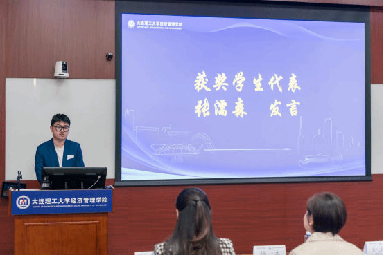 孙玉涛对寰宇留学的慷慨捐赠表达了诚挚的谢意,同时向获奖的同学们致以热烈的祝贺。他强调了学院对于国际化发展的高度重视,积极鼓励同学们勇敢地“走出去”,以长远的眼光去精心规划自己的职业生涯,不断充实丰富自己的人生阅历。他表示,校友的捐赠行为绝非简单的物质给予,而是经管卓越精神的传承与延续。他满怀期许地希望各位同学在未来能够学有所成,不仅在专业领域取得卓越成就,更要心怀感恩,积极回馈母校、回馈社会,将这份珍贵的精神火种继续传递下去。