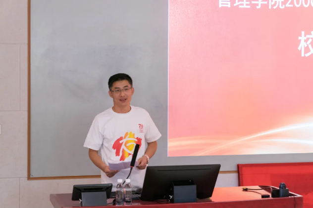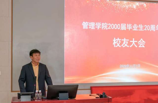 同样作为师兄的经管学院院长朱方伟教授在会上向校友们分享了近些年的教学感受,并表示自己很荣幸能够参与并见证了经管学院近年来傲人的发展成就。最后朱院长号召校友们回到母校,多关注学校和学院的建设发展,多参与人才培养工作,切实为母校作贡献。