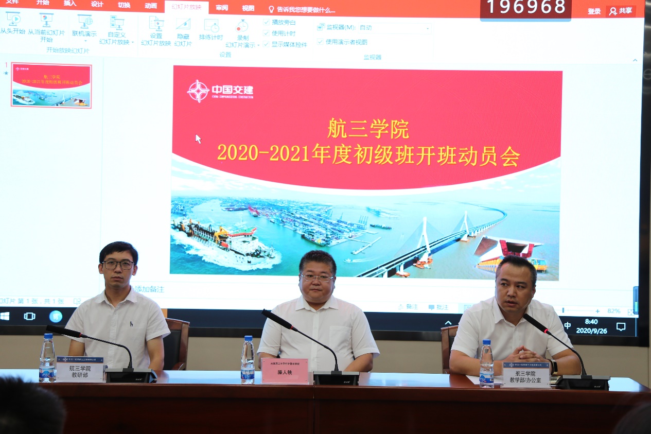 2020年9月26日,“2020-2021年度航三学院初级班” 第一期开班动员会在中交一局航三公司大厦举行,英国365集团公司经管学院院长助理滕人轶老师、航三公司人力资源部经理杨冬、企业发展部副经理张秋实出席了本次开班仪式。