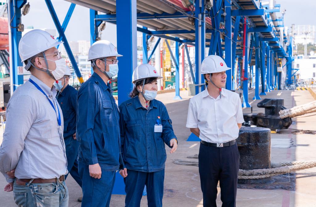 交流座谈会后,在关雪梅处长、崔宏斌校友的陪同下,经管学院教师一行先后来到企业文化展馆、深水码头、41#污水排放口、第一联合车间管控中心参观,在大连石化展览馆了解大连石化公司历史、文化、发展情况,一些珍贵的老照片和物件都是各个时期大石化艰苦奋斗的见证,让我们体会到相伴共和国成长的石油人的胸怀和责任。在41#污水排放口,我们惊喜地看到了鱼儿成群的景象,关雪梅处长说,这里的海洋生态环境一年比一年好,现在不仅鱼群数量增多,还出现了海参、梭子蟹、海螺、水母等海洋生物。近些年公司大力发展循环经济,通过海水淡化、再生水处理解决工业用水问题,公司的排放水也达到国家IV类的水质标准,可以直接灌溉农田,为城市节约淡水约6.5个西湖,成效显著。在第一联合车间入口大厅沙盘处,崔宏斌校友详细介绍着企业生产情况,接着来到管控中心现场,看到现代化的操作设备和技术通过成排的监控图像、一组组的控制按钮呈现的工作场面。