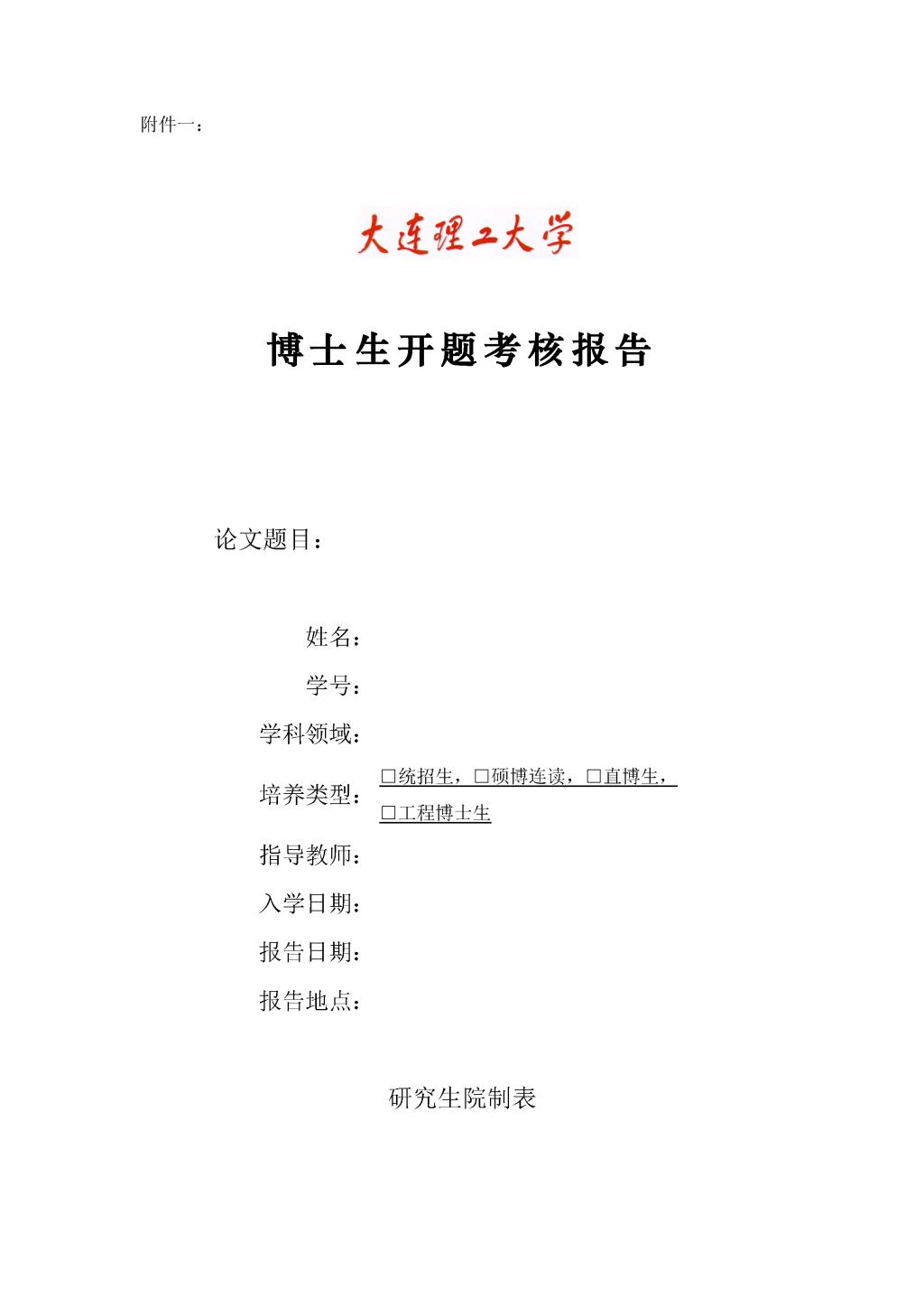 博士生开题考核报告