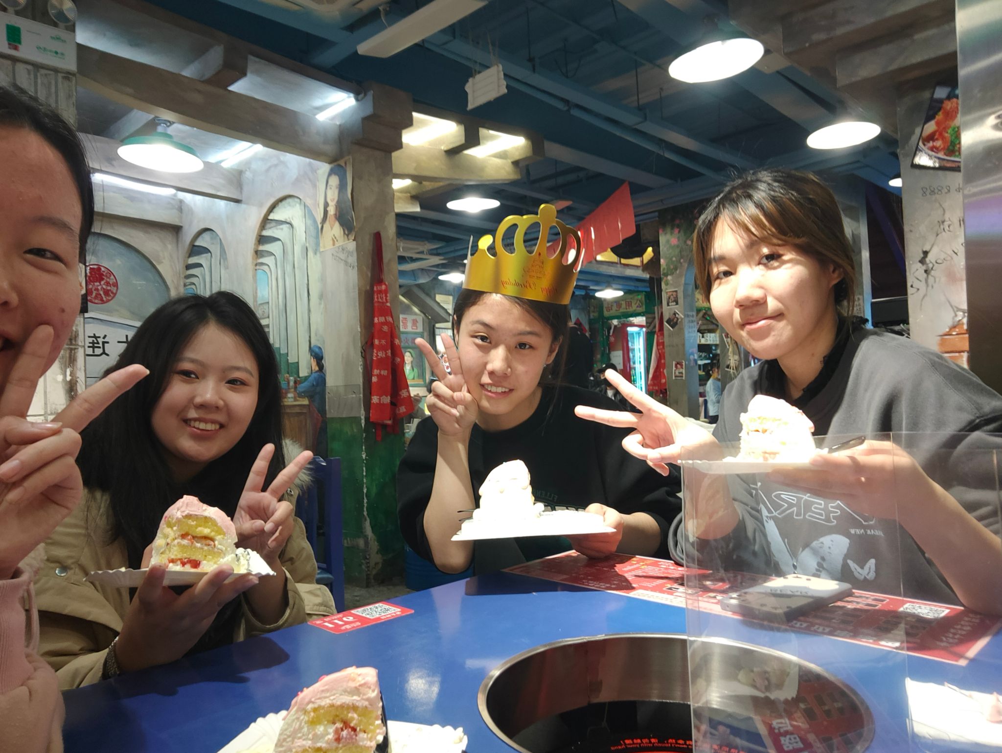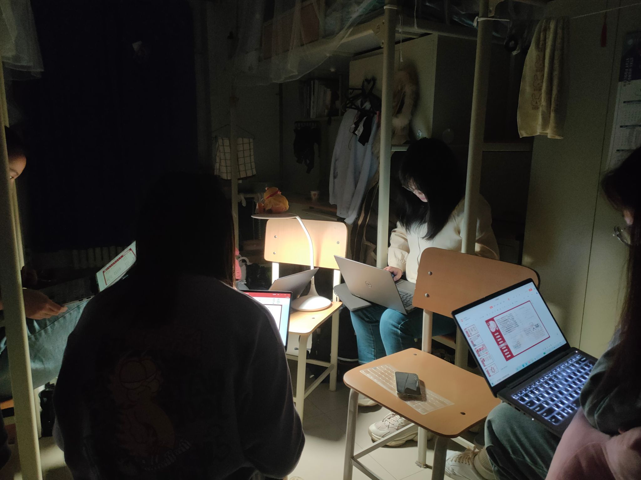 学习方面,寝室成员相互监督、互相鼓励、共同进步。线下抢占前排座位、线上提醒上课并交流所学、课后共约图书馆自习室、晚上讨论难题互相答疑……这些已然成为了她们的常态。她们日常有复习资料的分享,也有学习方法的提供;有披星戴月时的陪伴,也有压力焦虑中的开导;有寝室学习打卡以形成惯性,也有复习监督提醒以消除惰性……