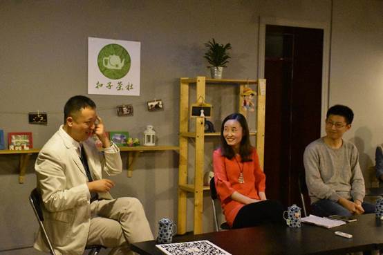 2016年4月10日晚6点,“扣子茶舍”第二期《在银行工作是怎样一种体验?》在七号时光社区驿站顺利开展。活动由管理与经济学部国际经济与贸易专业负责人丁永健副教授主持,邀请了国际经济与贸易(英语强化)专业2011届毕业生时蕾学姐和赵家鹏学长为在校生分享他们的银行从业经验。