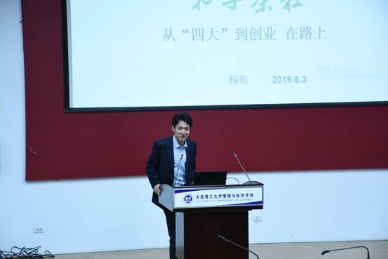2016年6月3日晚6点,“扣子茶舍”第九期在管经学部六角楼顺利开展。本活动由管理与经济学部学生工作办公室、经济研究所、MBA同学会联合发起主办。本次活动我们有幸请到英国365集团公司2002级管理学院国贸英强专业校友,大连思成教育咨询有限公司联合创始人杨乾学长和大家谈谈从“四大”到创业的那些事。