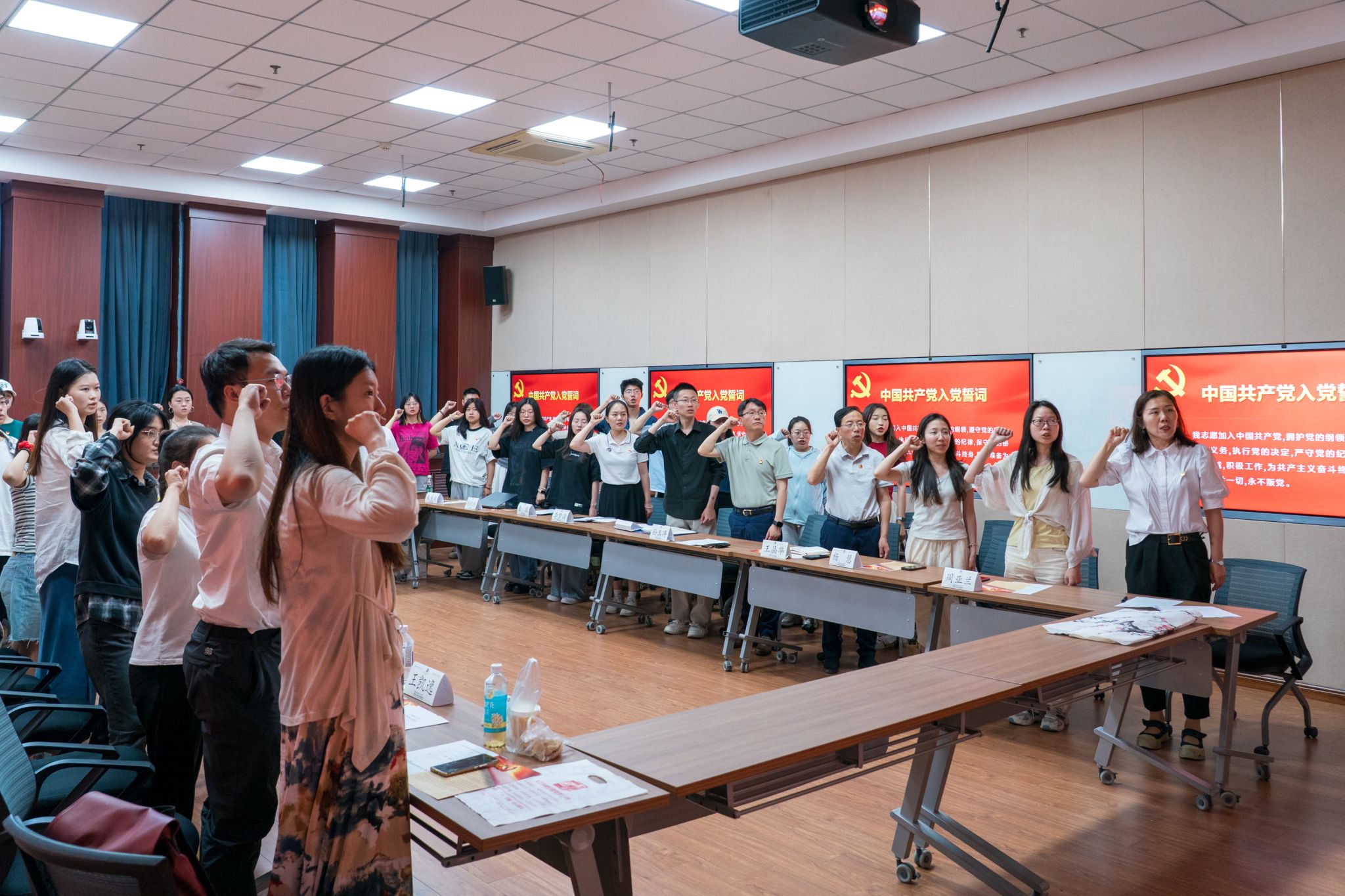 “我志愿加入中国共产党,拥护党的纲领,遵守党的章程……”,孙玉涛书记带领毕业生党员们重温入党誓词。大家高举右拳,字字铿锵,句句有力,将对党的忠诚与信仰融入誓言。庄重的宣誓,激励着大家以更加饱满的热情、更加昂扬的斗志投入到未来工作与生活中,永葆共产党员的政治本色。