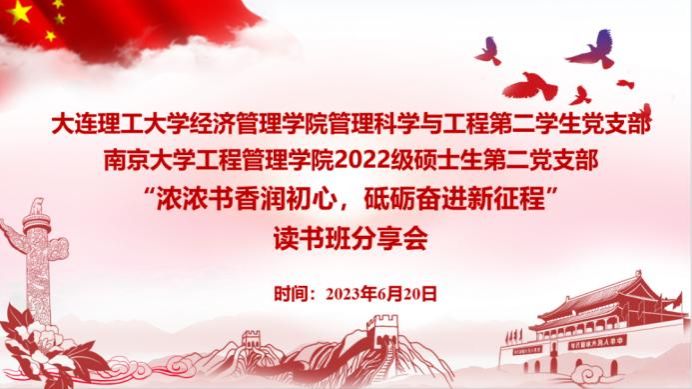 任职期间,李梦洁同志始终将“加强思想引领、推动共建共学”作为支部建设的重要方向。她与宣传委员张辰玥同志牵头策划并带领支部与南京大学工程管理学院硕士生第二党支部,于2023年4月至6月联合开展“奋进读书会,坚定信念红”系列共建活动。这是一场跨校、跨区域的联学尝试,也是一次围绕“学思想、强党性”的理论实践探索。