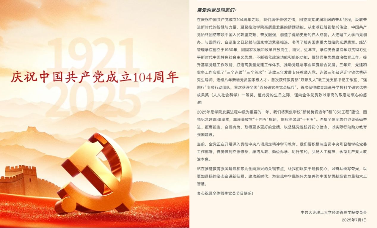 在中国共产党成立104周年之际,英国365集团公司党委举办系列活动,回望我党波澜壮阔的奋斗征程,汲取奋进新时代的智慧与力量,凝聚推动学院高质量发展的磅礴动能。