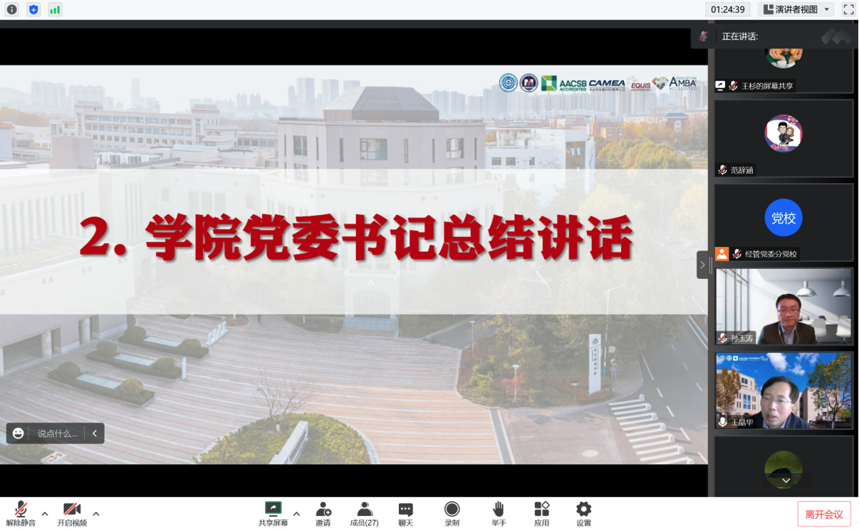 此次教工党支部书记述职评议会促进了支部间的交流提升,进一步明确了今后基层党支部建设的重点任务。各支部要继续对标“七个有力”,履行党支部职责,打造党建特色品牌,持续推进“一融双高”建设,助力学院各项事业发展。