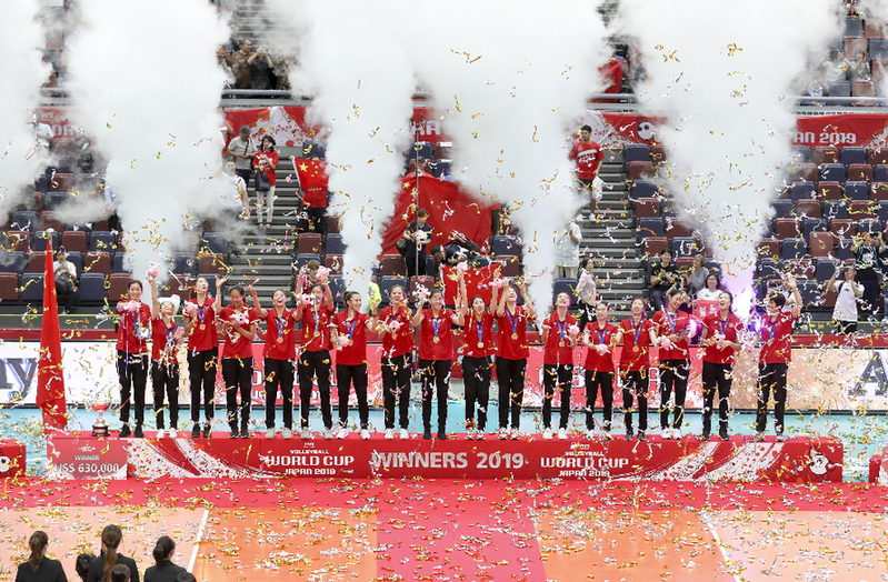 2019年9月,中国女排在日本举行的第十三届女排世界杯比赛中以全胜战绩卫冕,第十次荣膺世界排球“三大赛”冠军。