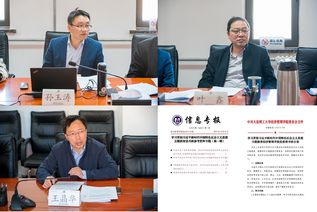 孙玉涛强调,习近平总书记指出,开展这次主题教育,是贯彻落实党的二十大精神的重大举措,对于统一全党思想、解决党内存在的突出问题、始终保持党同人民群众血肉联系、推动党和国家事业发展,具有重要意义。班子成员要带头抓好理论学习,读原著、悟原理,提高政治站位,从统一全党思想意志行动的高度,深刻认识主题教育的重大政治意义。学院党委已经进行了相关部署,班子成员要教育引导分管领域做好理论的实践应用,要以“在事上磨”的心态抓好学习,引导全体党员自觉把理论学习的丰硕成果转化为绘制宏伟蓝图的澎湃动能,转化为奋进新征程的生动实践;要统筹开展调查研究,避免多头调研。