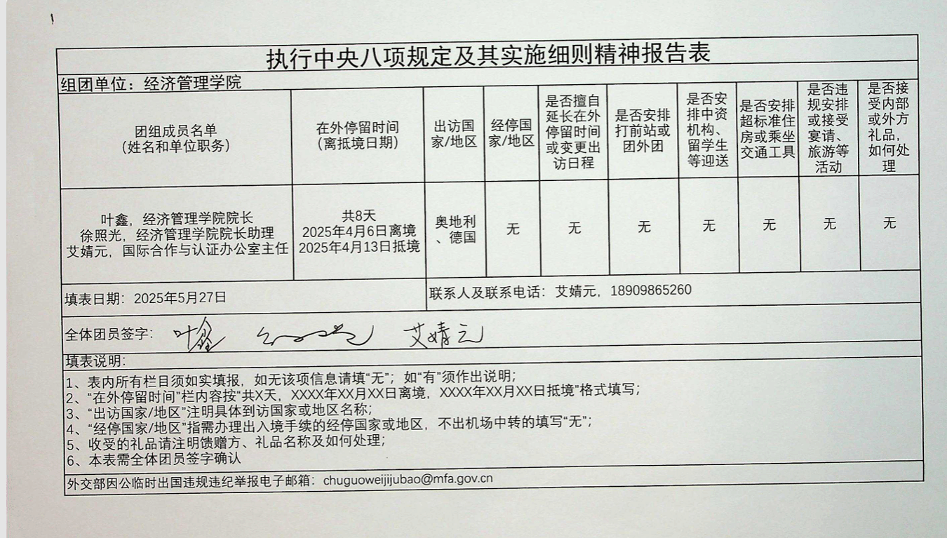 应AACSB 2025全球成员大会(International Conference and Annual Meeting)及亚琛工业大学等邀请,叶鑫、徐照光、艾婧元等一行3人赴奥地利、德国开展为期一周的国际交流访问。会议期间,不仅深入了解了全球商学院的发展趋势,也与国际国内同行就相关话题进行了广泛交流。与AACSB总裁兼首席执行官Lily Bi,执行副总裁、首席成员官、亚太区执行董事Geoff Perry,东亚区负责人徐国栋会面,AACSB高度认可学院发展,愿助力对接全球顶尖商学院资源,邀请学院参与国际会议分享中国案例研究经验。代表团还访问了德国亚琛工业大学、科隆大学和慕尼黑工业大学,签署4+1.5本硕联合培养协议及师生互访合作协议,深化了博士生联合培养及科研合作。在慕尼黑举办海外人才招聘会,宣传学院引才政策。同时与当地校友交流,凝聚海外资源助力学院发展。此次访问交流,深化了国际认证合作,拓展了全球顶尖高校伙伴关系,推进高水平合作落地。
