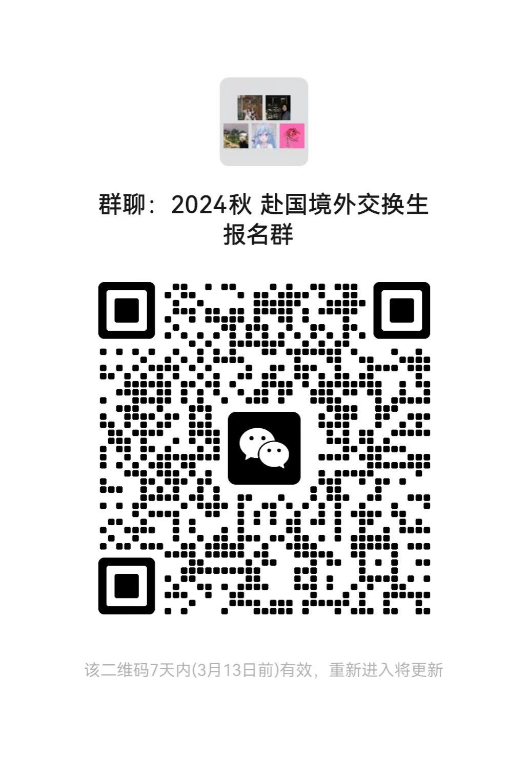 (3)提交材料后请进入“2024秋 赴国境外交换生报名群”微信群,关注后续通知。入群后请以“地区-申请学校-姓名”(例如:日本-东京大学-张三)备注名称。