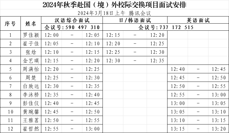 经院系初审、国际处复审报名材料,现通知以下同学参加2024年3月18日(周一)的校内评审,具体安排如下: