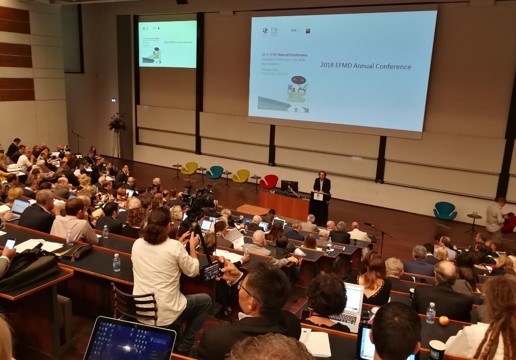 EFMD2018年会主题是“新技能、新工作、新教育”,在为期两天多的会议期间,来自欧洲、北美洲、南美洲、亚洲、大洋洲和非洲的500余位各国的专家、学者及企业家代表分别做了有关“未来工作”、“点亮新思维”等主题报告。